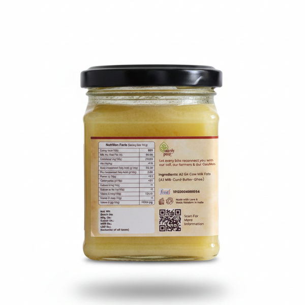 Every jar of A2 Gir Cow Ghee is a promise of purity made from desi Gir cows, prepared traditionally, and crafted with devotion. From farm to jar, it reflects ethical sourcing, traditional wisdom, and holistic nourishment.